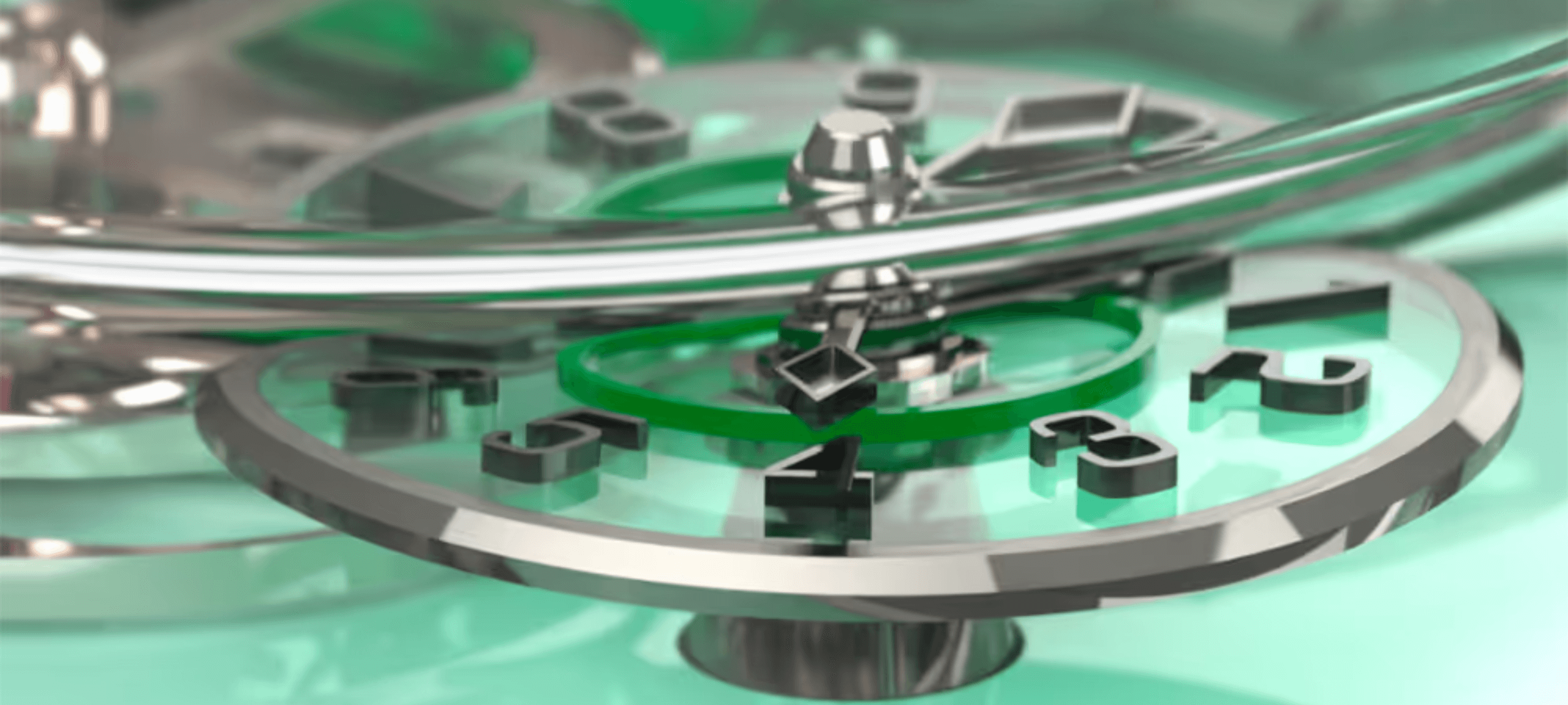 The Emmanuel Bouchet Complication One Aleph is adorned with a pastel green mainplate on which suspended transparent sapphire sub dials can be found. One could describe the dial of the Complication One by Emmanuel Bouchet as a traditional regulator, since it has separate dials for seconds, minutes, and hours. In reality, each element of the time display is itself deconstructed, a deconstruction that is deconstructed. The display of hours and minutes is unique. The hands position themselves instantly, unlike most watches where they move slowly.