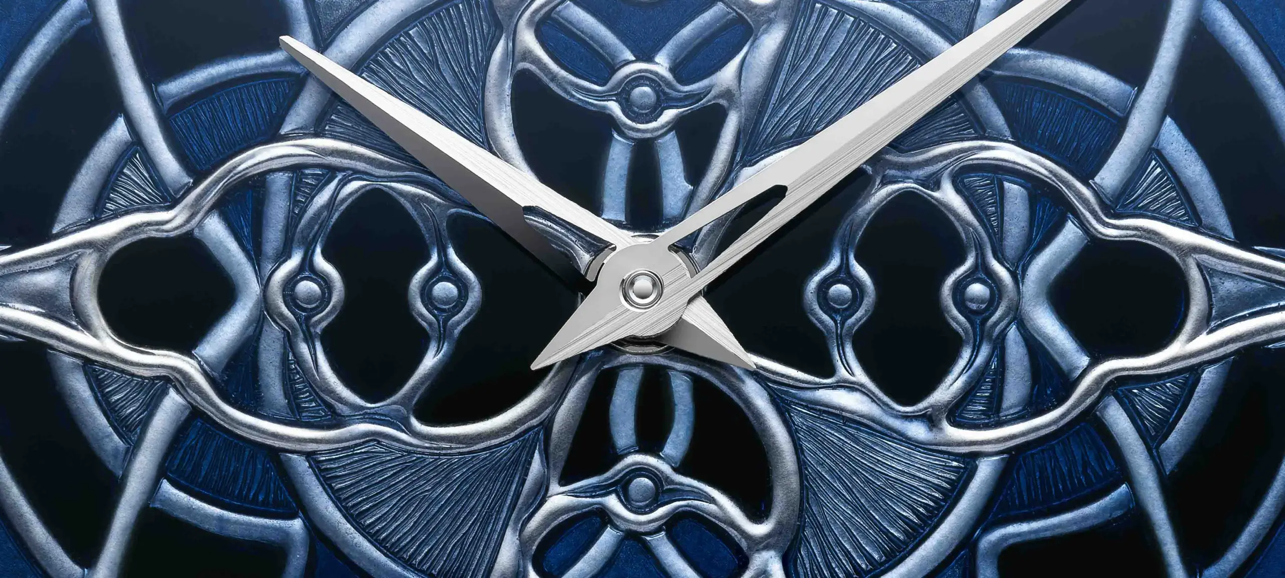 - Dial: Mixed métiers d’art techniques by Ateliers Olivier Vaucher, including multi-level hand engraving and grand feu enamel